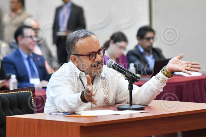 CIUDAD DE MÉXICO, 17SEPTIEMBRE2025.- Alfredo Vázquez Vázquez, durante su participación en el inicio de las audiencias públicas de la Comisión Presidencial para la reforma electoral realizadas en el salón Revolución de la Secretaría de Gobernación. Estuvieron presentes: José Antonio Peña Merino, titular de la Agencia de Transformación Digital y Telecomunicaciones; Pablo Gómez, presidente de dicha comisión; Lázaro Cárdenas Batel, jefe de la Oficina de la Presidencia, y César Yañez Centeno, subsecretario de Gobernación. FOTO: MARIO JASSO/CUARTOSCURO.COM
