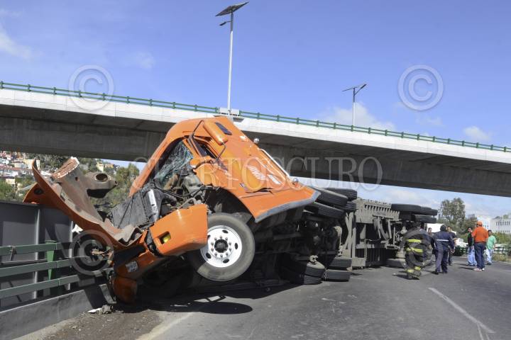 TLANEPANTLA, ESTADO DE MÉXICO, 12OCTUBRE2012.- Un trailer que transportaba aluminio volcó en avenida Reyes Heroles a la altura de la Avenida Periférico. Dicha arteria fue cerrada a la circulación por aproximadamente 2 horas, se reportó solo daños materiales. FOTO: LUIS CARBAYO /CUARTOSCURO.COM