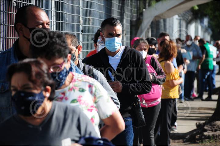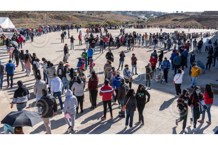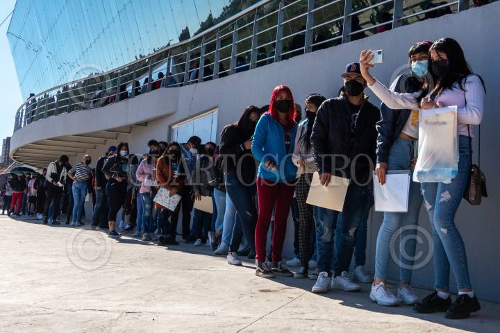 Jóvenes de 15 a 17 años realizaron largas filas previo a la aplicación de la segunda dosis de la vacuna contra el Covid-19 Pfizer en las instalaciones de Palacio de Convenciones de Zacatecas