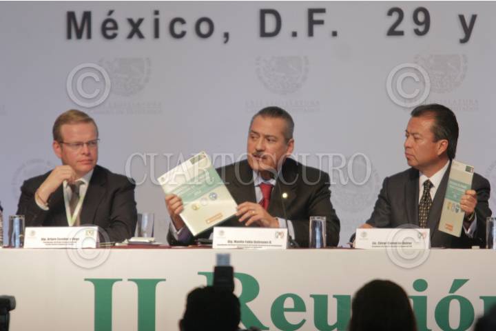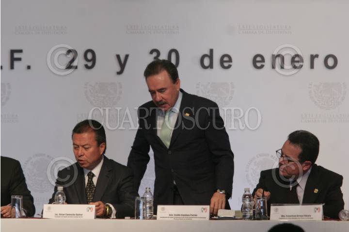 MÉXICO, D.F. 29ENERO2013.- Las fracciones parlamentarias del PRI y PVEM en la cámara baja, iniciaron la II Reunión Parlamentaria en un hotel de Polanco. El evento fué inagurado por Cesar Camacho Quiróz, presidente nacional del PRI, Arturo Escobar, del PVEM, Manlio Falio Beltrones, coordinador parlamentario en san lázaro del tricolor, Ivonne Ortega, secretaria general del PRI, entre otros. Al evento acudiran los secretarios de Gobernación, Miguel Angel Osorio Chong, de Hacienda, Luis Videgaray, y de Energía, Pedro Joaquín Coldwell durante todo el día. FOTO: JUAN PABLO ZAMORA /CUARTOSCURO.COM