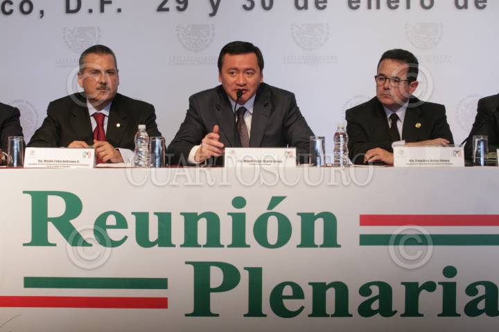 MÉXICO, D.F. 29ENERO2013.-El secretario de Gobernación, Miguel Ángel Osorio Chong, Las fracciones parlamentarias del PRI y PVEM en la cámara baja, iniciaron la II Reunión Parlamentaria en un hotel de Polanco. FOTO: JUAN PABLO ZAMORA /CUARTOSCURO.COM