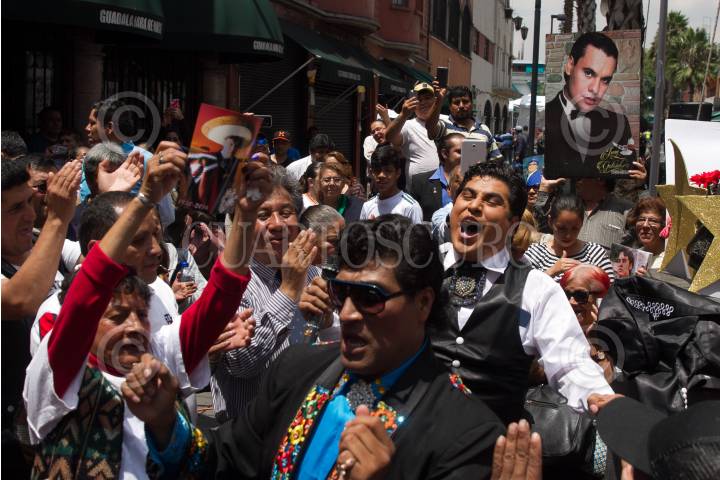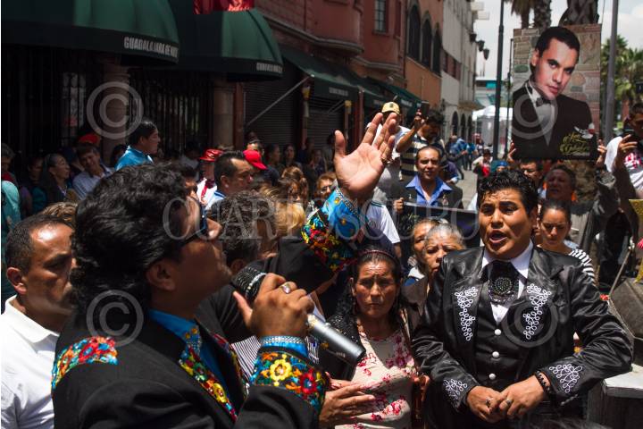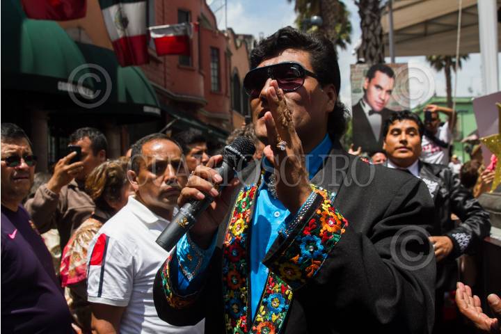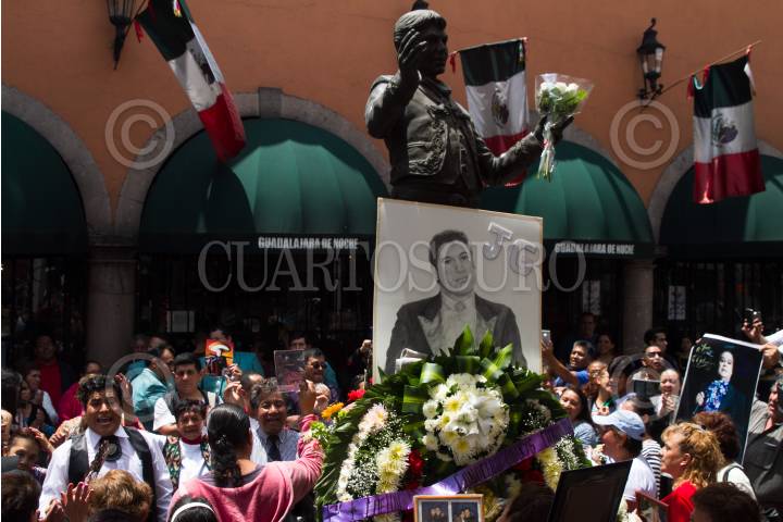 CIUDAD DE MÉXICO, 28AGOSTO2018.- Seguidores del desaparecido cantante Juan Gabriel se dieron cita en su estatua en la Plaza Garibaldi, para conmemorar su segundo aniversario luctuoso. Imitadores y cantantes entonaron las más emblemáticas canciones del llamado "Divo de Juárez", entre decenas de personas que las vitoreaban y las coreaban. FOTO: MOISÉS PABLO /CUARTOSCURO.COM