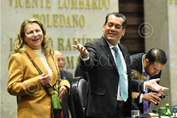 CIUDAD DE MÉXICO, 01FEBRERO2025.- Con 346 votos a favor y 90 en contra fue aprobada en lo general la reforma al INFONAVIT, durante la sesión ordinaria del Segundo Año de Ejercicio de la LXVI Legislatura del Congreso de la Unión de la Cámara de Diputados. En la imagen, María del Carmen Pinete, vicepresidenta de la mesa directiva, junto a Sergio Gutiérrez, presidente de la mesa directiva. FOTO: MARIO JASSO/CUARTOSCURO.COM