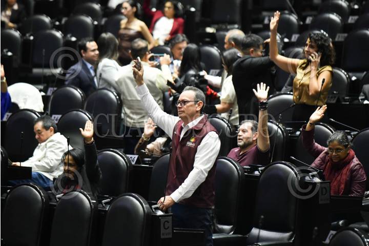 CIUDAD DE MÉXICO, 05FEBRERO2025.- Pedro Haces, diputado de Morena, junto a sus compañeros de bancada, emiten su voto a favor de la orden día de la sesión ordinaria del Segundo Año de Ejercicio de la LXVI Legislatura del Congreso de la Unión de la Cámara de Diputados, en la que se discute y se somete a votación el listado de las personas aspirantes que resultaron insaculadas para los cargos del Poder Judicial. FOTO: MARIO JASSO/CUARTOSCURO.COM