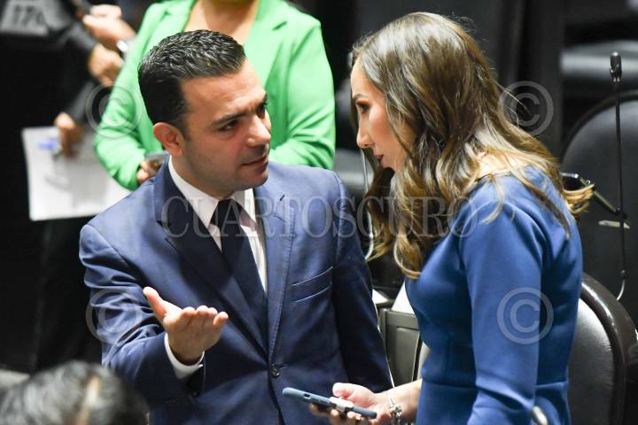 CIUDAD DE MÉXICO, 11FEBRERO2025.- Elías Lixa, diputado y coordinador del PAN, junto a su compañera de bancada Noemí Luna Ayala, durante la sesión ordinaria de la Cámara de Diputados, en la que se discutió el dictamen relativo a la Cuenta de la Hacienda Pública Federal, correspondiente al Ejercicio Fiscal 2022. FOTO: MARIO JASSO/CUARTOSCURO.COM