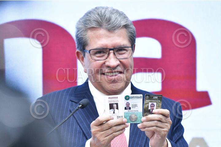 CIUDAD DE MÉXICO, 11FEBRERO2025.- Ricardo Monreal, diputado y coordinador de Morena en la Cámara de Diputados, junto a Arturo Ávila, diputado y vocero del grupo parlamentario de Morena, durante la conferencia "Legislativa del Pueblo" en la que se compartió información sobre la Ley de No Reelección y Nepotismo; el presupuesto de elección del Poder Judicial y presentación de la agenda legislatura para las próximas sesiones ordinarias en la cámara baja. En la imagen, Monreal, muestra sus credenciales: de afiliación a Morena; de diputado federal y de la sesión constitutiva de la LXVI Legislatura. FOTO: MARIO JASSO/CUARTOSCURO.COM