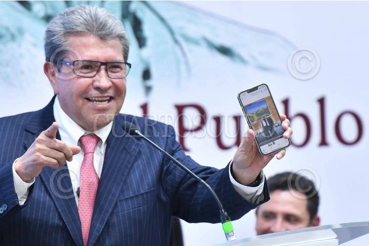 CIUDAD DE MÉXICO, 11FEBRERO2025.- Ricardo Monreal, diputado y coordinador de Morena en la Cámara de Diputados, durante la conferencia "Legislativa del Pueblo" en la que se compartió información sobre la Ley de No Reelección y Nepotismo; el presupuesto de elección del Poder Judicial y presentación de la agenda legislatura para las próximas sesiones ordinarias en la cámara baja. En la imagen, Monreal, muestra una foto junto a Adán Augusto López, senador y coordinador de Morena en la cámara alta, con quien asegura lleva una buena relación de amistad. FOTO: MARIO JASSO/CUARTOSCURO.COM