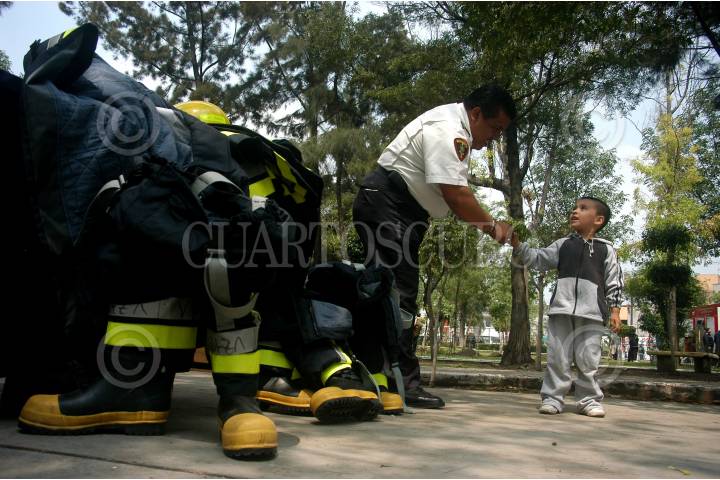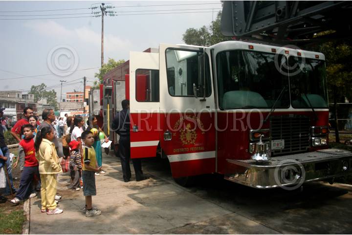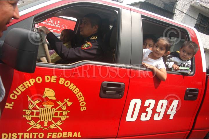 MÉXICO D.F. 26MAYO2007.-Niños de la colonia Moctezuma 2a. sección convivieron con elementos del heroico cuerpo de bomberos durante el Foro de Seguriadad Infantil que se llevo acabo en el parque Fortino Serrano. FOTO: GUILLERMO PEREA/CUARTOSCURO.COM