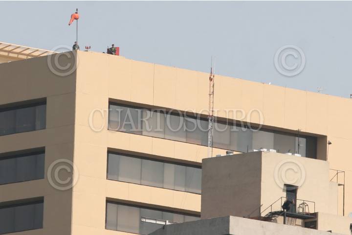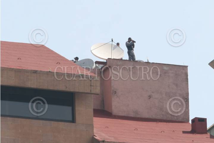 MÉXICO, D.F., 21JUNIO2010.- Francotiradores del estado mayor presidencial, resguardan los edicicios aledaños al campo marte donde se realizó un evento donde asitió el presidente de México Felipe Calderón. FOTO: SAÚL LÓPEZ/CUARTOSCURO.