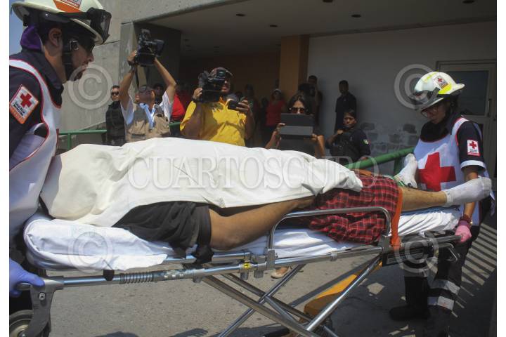CIUDAD JUÁREZ, CHIHUAHUA, 12AGOSTO2015.- Dos hombres heridos por impacto de bala fueron trasladados a la clínica a bordo de dos ambulancias de Cruz Roja y Rescate. Uno de los hombres, cuya edad oscila entre los 20 y los 25 años, presentaba impacto en la cabeza, mientras que el otro llegó inconsciente. El hecho violento ocurrió en la calle Guadalupe Hernández López y Alejandro Parra, lo que provocó un fuerte dispositivo de seguridad en el sector. Este es el primer hecho violento de la semana; el último se registró el domingo por la noche. FOTO: NACHO RUIZ /CUARTOSCURO.COM