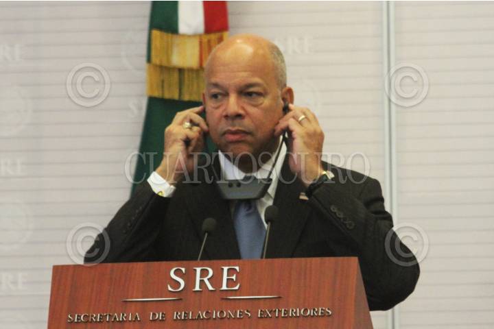 CIUDAD DE MÉXICO, 11OCTUBRE2016.- Claudia Ruiz Massieu, secretaria de Relaciones Exteriores, ofreció conferencia conjunta con Jeh Johnson, secretario de Seguridad Interna de Estados Unidos. Tras dos horas de espera los funcionarios arribaron al encuentro con medios de comunicación, del que cabe destacar no hubo ronda de preguntas, además de que no éxistió contacto alguno entre ambos, ni al principio o al término de la conferencia. FOTO: MARÍA JOSÉ MARTÍNEZ /CUARTOSCURO.COM
