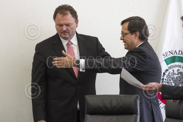 CIUDAD DE MÉXICO, 26ENERO2017.- El senador priista Ernesto Gándara Camou, y Roberto Campa Cifrián, subsecretario de Derechos Humanos de Segob, durante tercera reunión de acercamiento y reflexiones "La Seguridad Interior desde la perspectiva de los Derechos Humanos", en el Senado de la República. FOTO: MOISÉS PABLO /CUARTOSCURO.COM