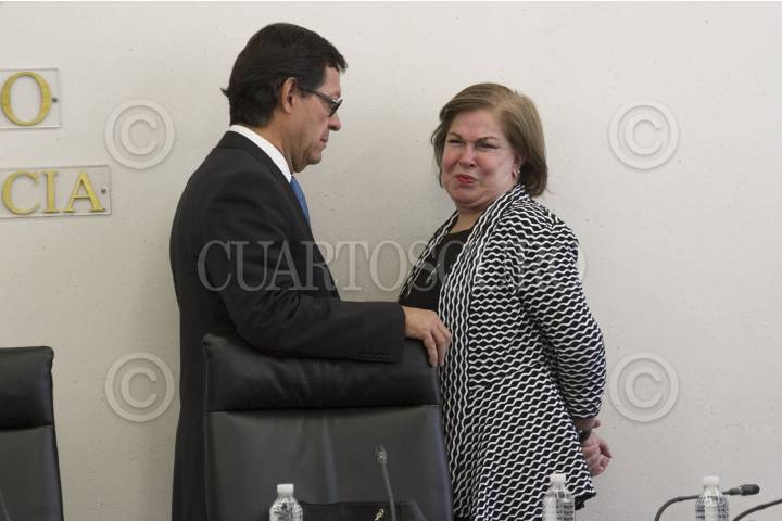 CIUDAD DE MÉXICO, 26ENERO2017.- Roberto Campa Cifrián, subsecretario de Derechos Humanos de Segob, y la diputada Mercedes del Carmen Guillén Vicente, durante tercera reunión de acercamiento y reflexiones "La Seguridad Interior desde la perspectiva de los Derechos Humanos", en el Senado de la República. FOTO: MOISÉS PABLO /CUARTOSCURO.COM
