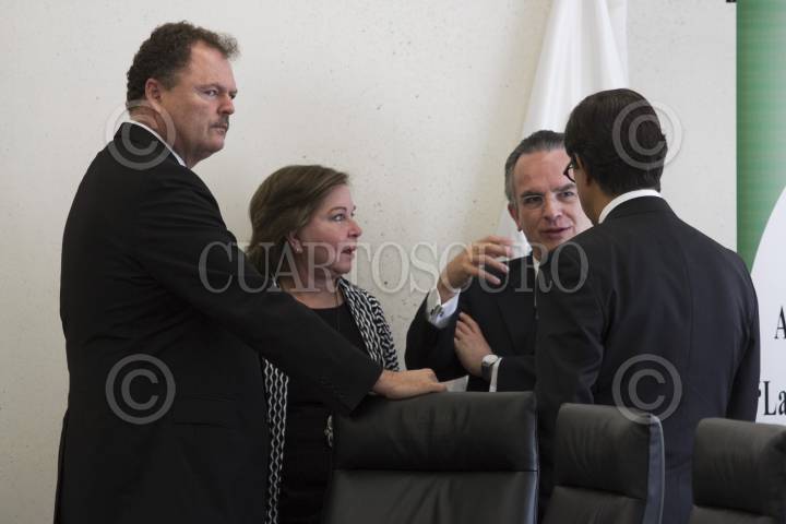 CIUDAD DE MÉXICO, 26ENERO2017.- El senador priista Ernesto Gándara Camou; la diputada Mercedes del Carmen Guillén Vicente; Miguel Ruiz Cabañas, subsecretario para Asuntos Multilaterales y derechos Humanos de la SRE, y Roberto Campa Cifrián, subsecretario de Derechos Humanos de Segob, durante tercera reunión de acercamiento y reflexiones "La Seguridad Interior desde la perspectiva de los Derechos Humanos", en el Senado de la República. FOTO: MOISÉS PABLO /CUARTOSCURO.COM