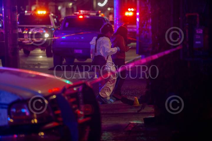 Agente de servicios periciales realizando el procedimiento correspondiente, tras el ataque a un hombre con arma de fuego, sobre el bulevar Agua Caliente.