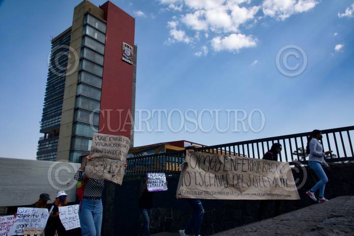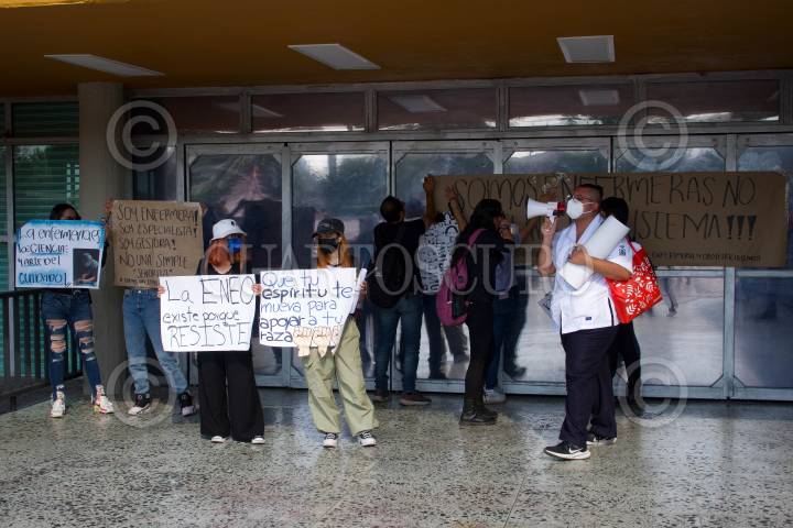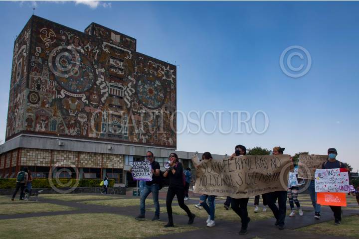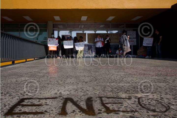 Supuestos estudiantes de la ENEO se manifestaron frente a la Rectoría de la UNAM para exigir el cumplimiento de un pliego petitorio.