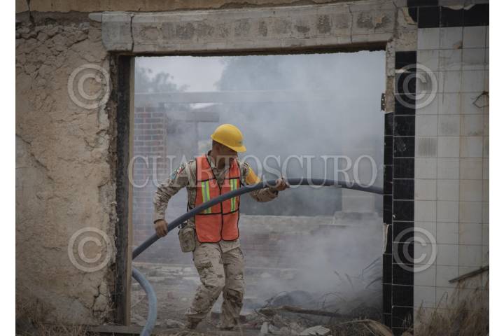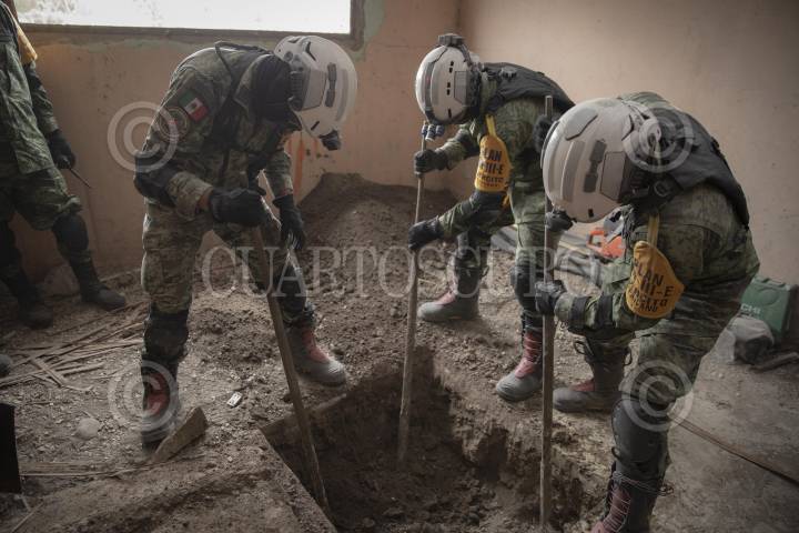 Elementos del Ejército Mexicano realizando maniobras de excavación.