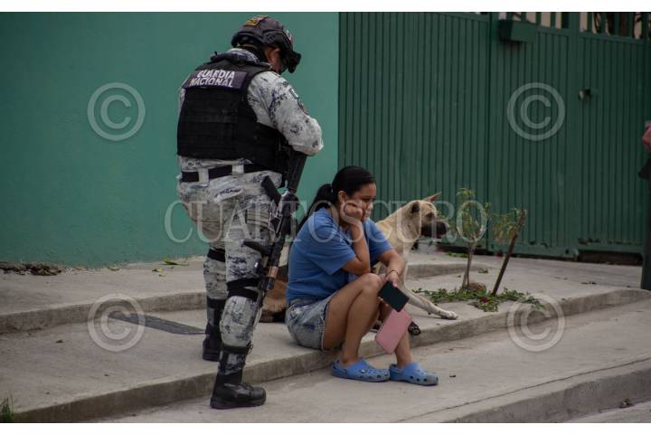 TIJUANA, BAJA CALIFORNIA, 11OCTUBRE2023.- Elemento del Ejercito Militar a un costado de una mujer sentada sobre la banqueta. El cuerpo sin vida envuelto en una sabana color café y cartón, atado con un cable, fue encontrado en la colonia Emperadores. De acuerdo a información extraoficial, un taxista que transitaba por la calle Chacatzil cuando observó un bulto sospechoso y notifico a unos agentes de la Guardia Nacional que se encontraban cerca del lugar. Al llegar autoridades dieron positivo al hallazgo, quedando a cargo elementos de la Fiscalia General del Estado y Servicios Periciales, quienes procesaron la escena. FOTO: OMAR MARTÍNEZ/ CUARTOSCURO.COM