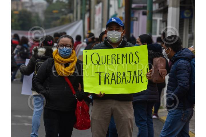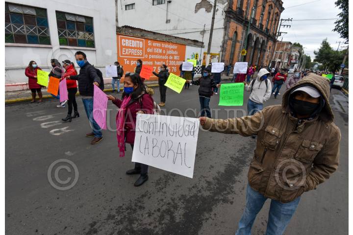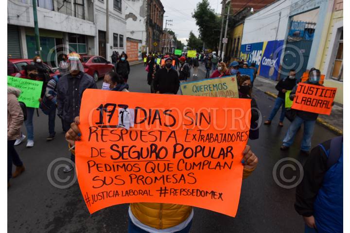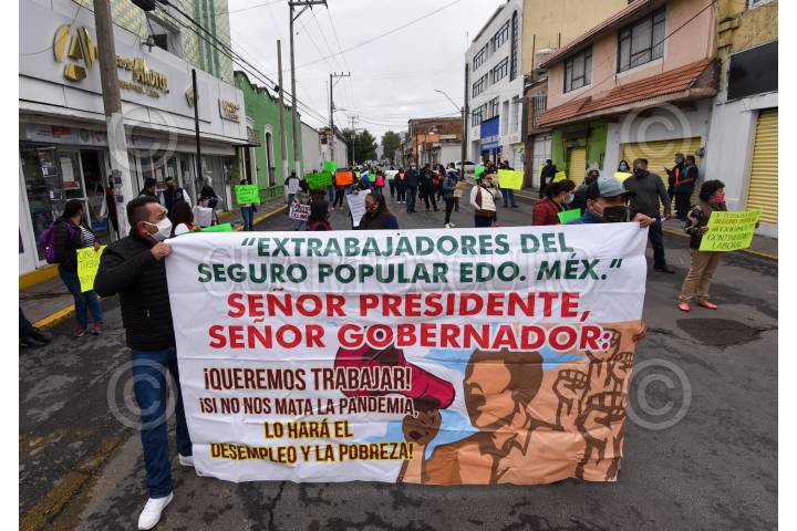 Extrabajadores del Seguro Popular en el Estado de México se manifestaron bloqueando algunas avenidas en la capital mexiquense exigiendo su reinstalación laboral e integración al INSABI.