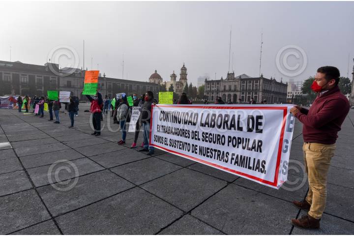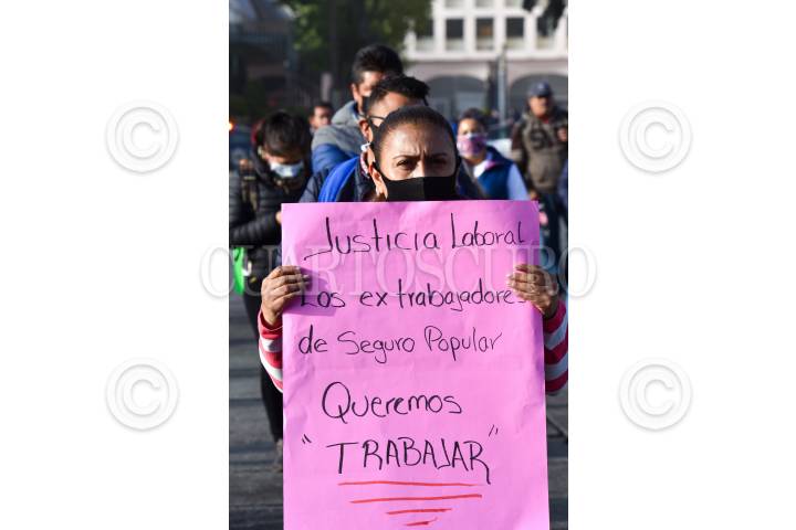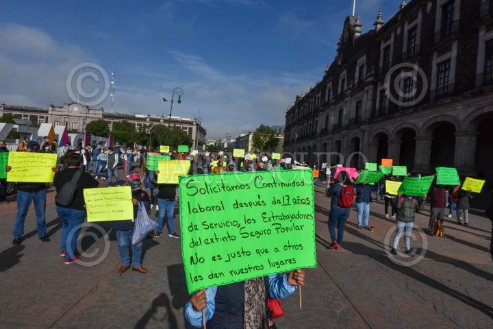 Ex trabajadores del Seguro Popular se manifestaron en Palacio de Gobierno exigiendo su recontratación en el INSABI.