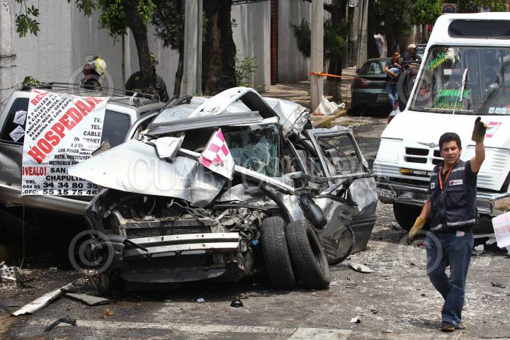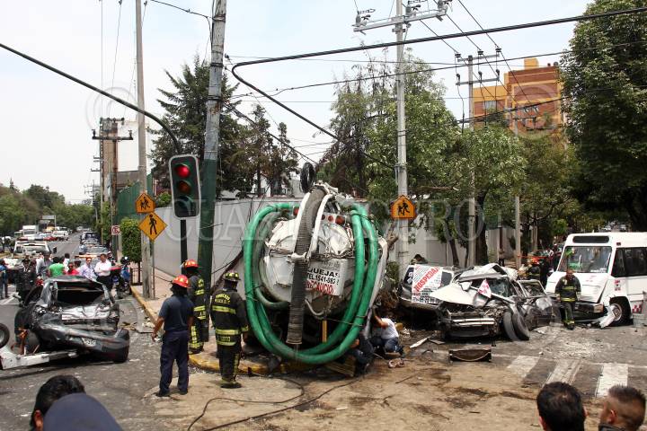 MÉXICO, D.F., 25ABRIL2011.- 23 heridos fue el saldo de un aparatoso accidente de un camión vactor que se quedo sin frenos en el cruce de las avenidas Gobernador Muzquiz y Constituyentes en la colonia San Miguel Chapultepec. FOTO: SAÚL LÓPEZ/CUARTOSCURO.COM