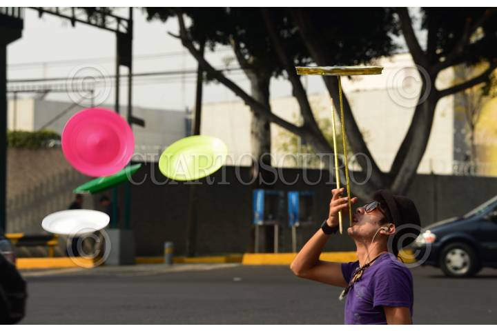 MÉXICO, D.F.,12DICIEMBRE2014.- Joven malabarista trabajando en uno de lo semáforos al sur de la ciudad. FOTO: ISABEL MATEOS / CUARTOSCURO.COM