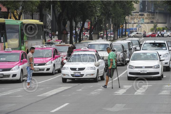 MÉXICO, D.F., 05OCTUBRE2014.- Trabajadores de Semex contratados por el Gobierno del DF limpian las señalizaciones transito sobre el Eje Central para su mejor funcionamiento. FOTO: MOISÉS PABLO /CUARTOSCURO.COM
