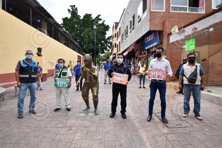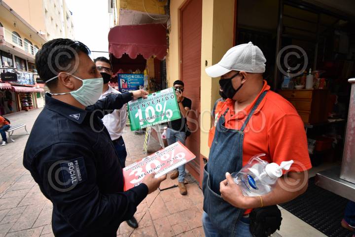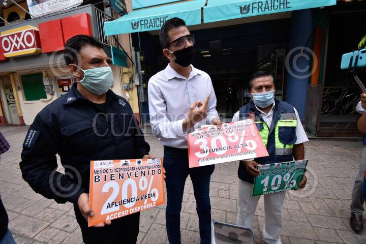 Autoridades municipales implementaron un programa con señalizaciones que simulan ser un semáforo, el cual dependiendo de su color alertará a las personas que ingresen a un negocio que tanta capacidad de afluencia tiene según las recomendaciones de salud para evitar contagios de Covid-19.