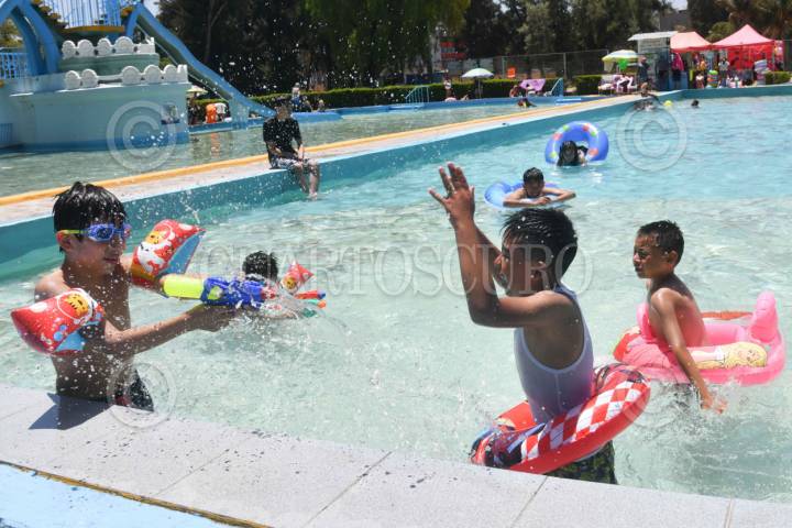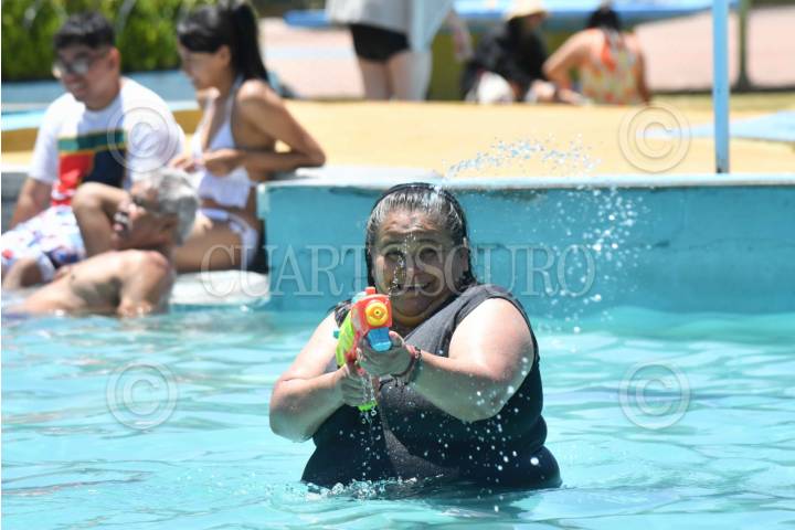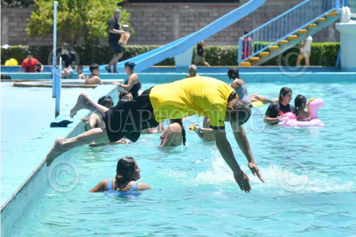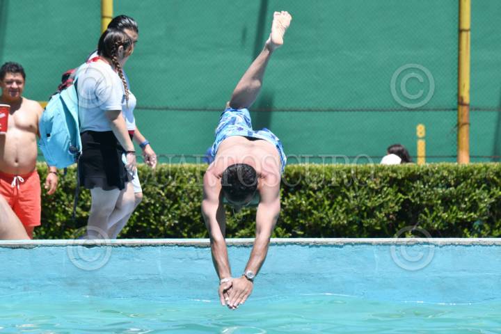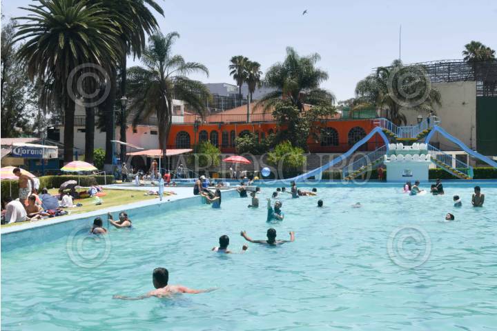 CIUDAD DE MÉXICO, 12ABRIL2025.- Decenas de personas aprovechan el inicio de vacaciones de semana santa en el balneario "Olímpico" de la colonia Pantitlán. FOTO: MARIO JASSO/CUARTOSCURO.COM