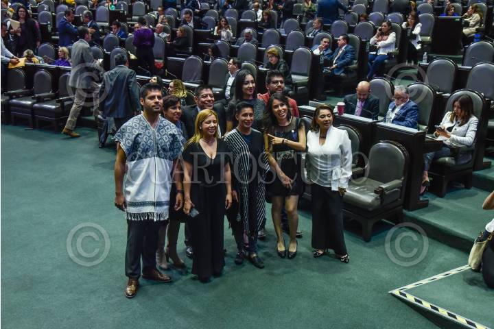 Alberto López, diseñador tzotzil originario de Aldama Chiapas, durante su visita al pleno de la Cámara de Diputados.