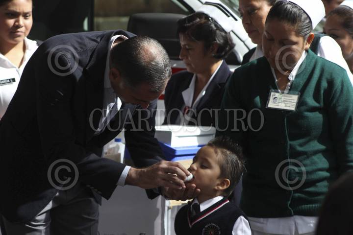OAXACA, OAXACA, 07OCTUBRE2013.- El gobernador del estado, Gabino Cué arrancó este lunes la 3 Semana Nacional de Salud, en la que se aplicarán más de 358 ml doses de diversa vacunas como Sabin, triple viral, antirrotavirus y anti hepatitis, entre otras, esto aunado a la distribución de 250 mil dotaciones de ácido fólico. FOTO: ARTURO PÉREZ ALFONSO /CUARTOSCURO.COM