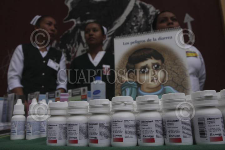 OAXACA, OAXACA, 07OCTUBRE2013.- Dosois de albendazol, antihelmíntico empleado para infecciones estomacales, en el arraque de la 3 Semana Nacional de Salud que encabezó el gobernador del estado, Gabino Cué, en la que se aplicarán más de 358 ml doses de diversa vacunas como Sabin, triple viral, antirrotavirus y anti hepatitis, entre otras, esto aunado a la distribución de 250 mil dotaciones de ácido fólico. FOTO: ARTURO PÉREZ ALFONSO /CUARTOSCURO.COM