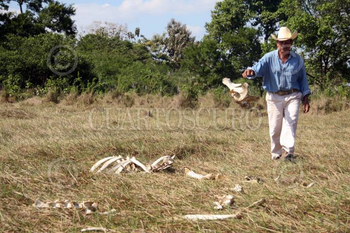 TENOSIQUE, TABASCO, 19FEBRERO2009.- El incremento en los brotes de estiaje se a venido agravando en las ultimas semanas provoca la muerte de ganado. FOTO: MARCO POLO GUZMÁN HERNÁNDEZ/CUARTOSCURO.COM