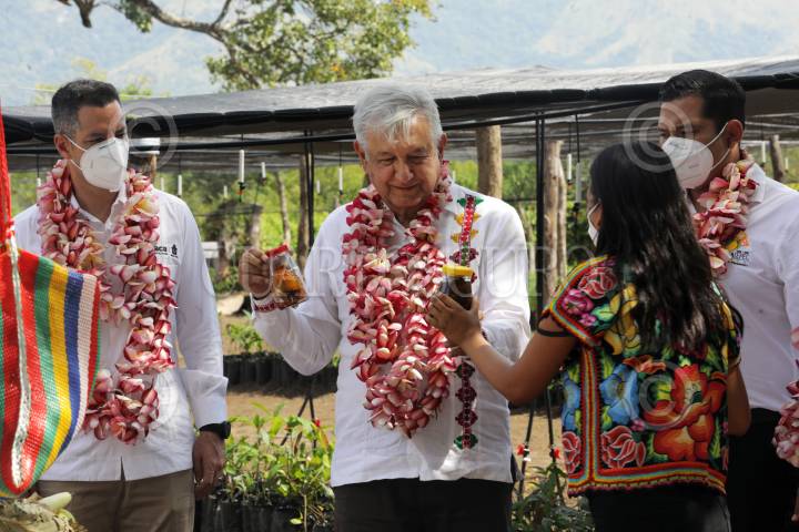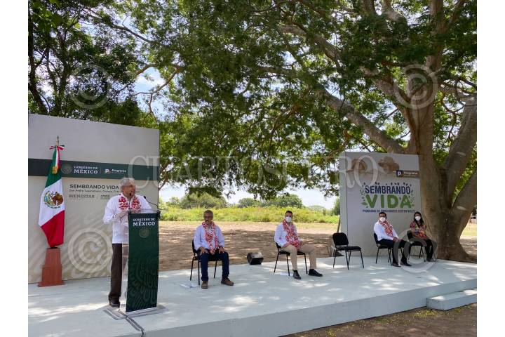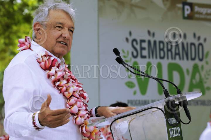 Andrés Manuel López Obrador durante su gira por elestado de Oaxaca para presentar el proyecto "Sembrando Vida" en la comunidad de San Pedro Tapanatepec.