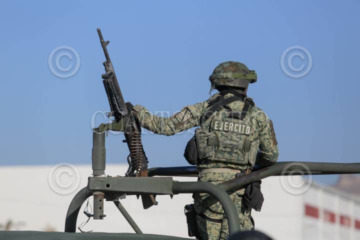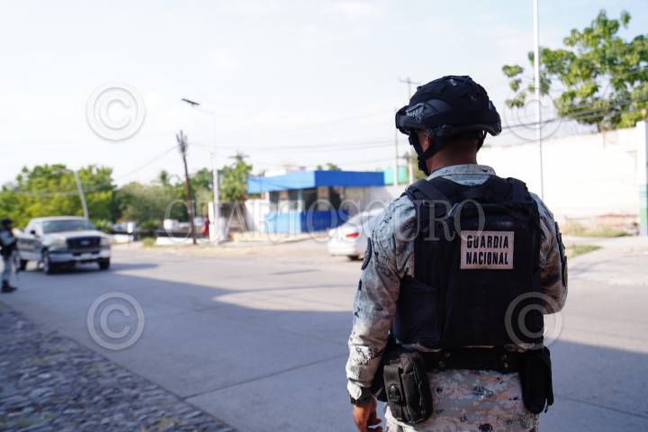 BUENAVISTA, MICHOACÁN, 18DICIEMBRE2024.- Elementos de la Guardia Nacional custodian la Semefo en donde están los cuerpos de los dos soldados que murieron tras la explosión de una mina terrestre, de fabricación casera, en un supuesto campo minado ubicado en los límites de los municipios de Buenavista Tomatlán y Apatzingán, en la región de Tierra Caliente. FOTO: JUAN JOSÉ ESTRADA SERAFÍN/ CUARTOSCURO.COM