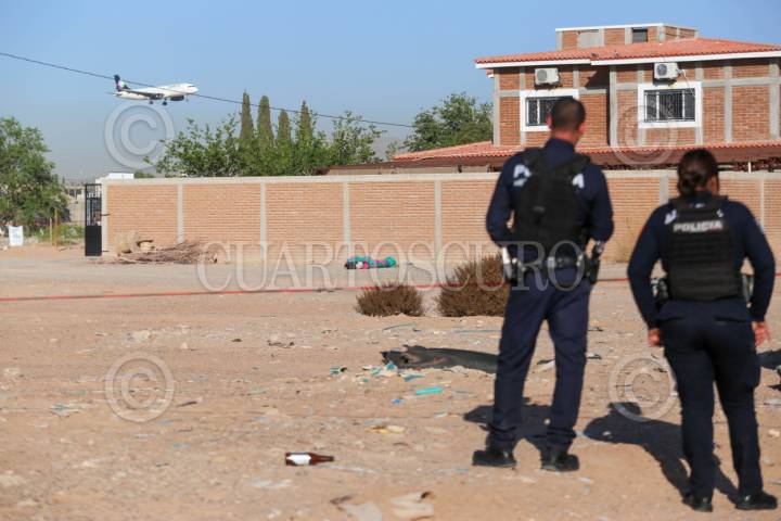 CIUDAD JUÁREZ, CHIHUAHUA, 10ABRIL2025.- Vecinos reportaron el cadáver de un hombre que estaba encobijado en predio detrás del aeropuerto, cerca de un cuartel de la Guardia Nacional. Las autoridades investigan el caso. FOTO: CARLOS SÁNCHEZ COLUNGA/CUARTOSCURO.COM