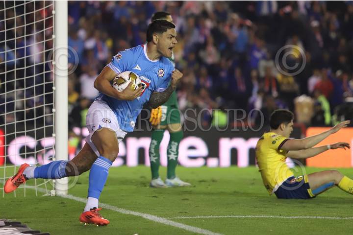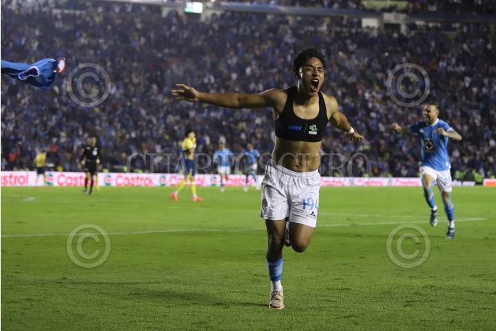 CIUDAD DE MÉXICO, 08DICIEMBRE2024.- Ignacio Rivero, futbolista de Cruz Azul, puso el primer tanto de su equipo durante el encuentro contra el América. FOTO: DANIEL AUGUSTO/ CUARTOSCURO.COM