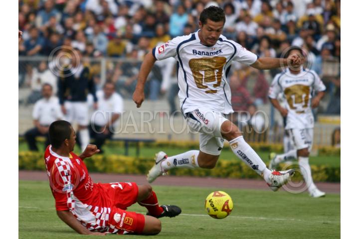 MÉXICO, D.F., 16MAYO2009.- Dante Lópe de los pumas de la UNAM corre con el balón durante el encuentro en contra de los Tecos de la UAG en partido de cuartos de final del Clausura 2009 del futbol mexicano; venciendo los Pumas 3 goles a 0 y pasando estos a las semifinales. FOTO: LUZ ACEVEDO/CUARTOSCURO.COM
