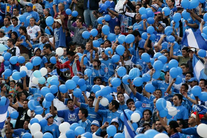 MÉXICO, D.F., 28NOVIEMBRE2009.- Aficionados de la Maquina Celeste del Cruz Azul durante el partido en contra del Puebla de la Franja en donde la Maquina gano 3 goles a 2 en el partido de cuartos de final del torneo Apertura 2009 que se celebro en el estadio Azul y pasando la Maquina a las semifinales. FOTO: RODOLFO ANGULO/CUARTOSCURO.COM
