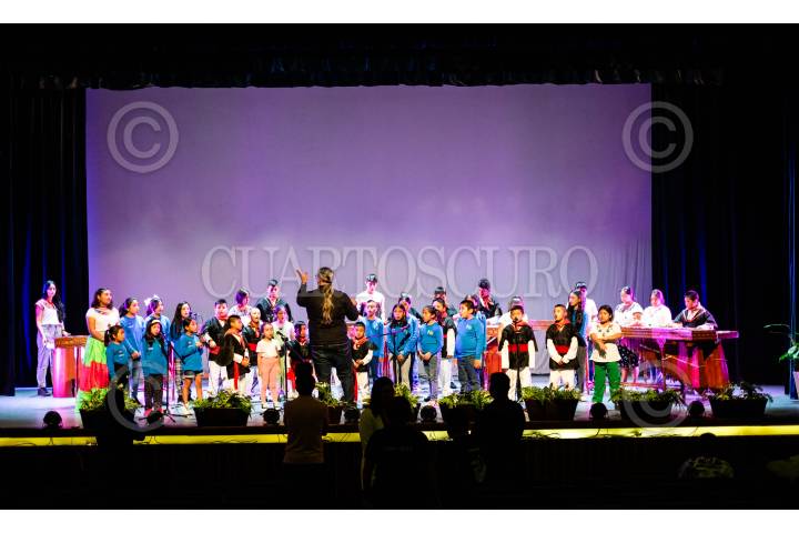 Niños provenientes de Semilleron creativos durante su participación en el ensayo general de la tercera edición del magno evento de Cultura Comunitaria "Tengo un sueño 2022", en el Auditorio Nacional.