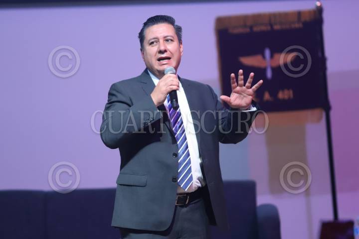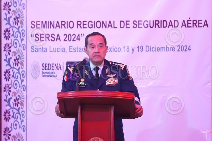 TECÁMAC, EDOMEX, 18DICIEMBRE2024.- El piloto aviador, general Román Carmona Landa, inauguró el primer Seminario Regional de Seguridad Aérea. FOTO: DANIEL AUGUSTO / CUARTOSCURO.COM
