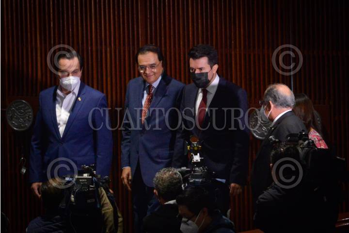 Félix Arturo Medina, nuevo titular de la Procuraduría Fiscal de la Federación, junto a Sergio Gutiérrez, presidente de la mesa directiva de la Comisión Permanente y Olga Sánchez vicepresidenta de dicha comisión.