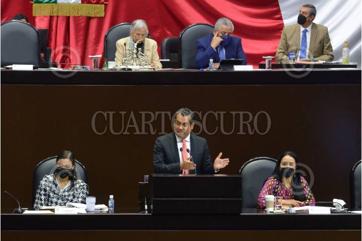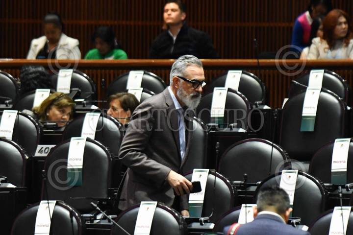 Sergio Gutiérrez, diputado de Morena y presidente de la mesa directiva de la Cámara de Diputados, durante su participación en la discusión de la resolución del expediente de la Declaratoria de Procedencia, relacionada con Uriel Carmona Gándara, Fiscal General del Estado de Morelos.