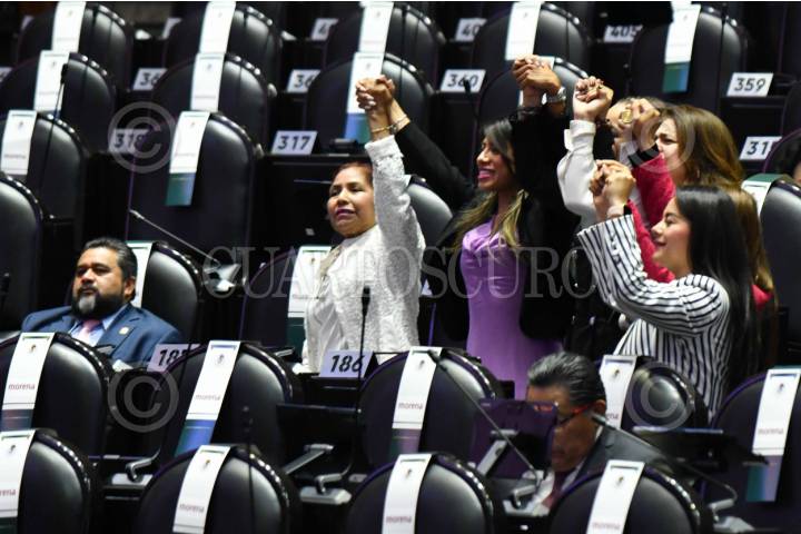 CIUDAD DE MÉXICO, 08FEBRERO2024.- Las diputadas de Morena: Graciela Sánchez Ortiz; Noemí González Salazar; Lidia Pérez Bárcenas y Cecilia Márquez Alkadef, durante la sesión ordinaria semipresencial de la Cámara de Diputados, en la que se presentó la efeméride con motivo del Aniversario de la Promulgación de la Ley General de Acceso de las Mujeres a una Vida Libre de Violencia. FOTO: MARIO JASSO/CUARTOSCURO.COM