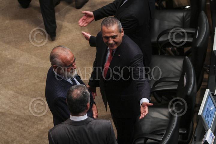 MÉXICO, D.F., 05NOVIEMBRE2015.- Diego Fernández de Cevallos y Manlio Fabio Beltrones durante la toma de protesta del consejo consultivo del Senado de la República en la Cámara de Alta. FOTO: ISABEL MATEOS /CUARTOSCURO.COM