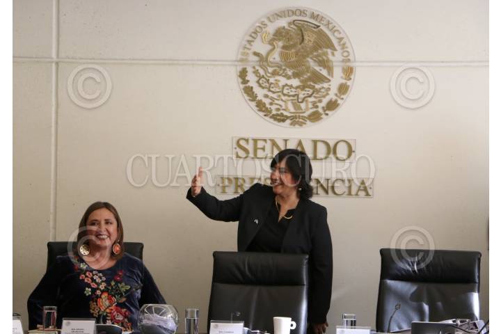 CIUDAD DE MÉXICO, 14OCTUBRE2019.-Xochitl Gálvez, Secretaria de la Comisión Anticorrupción, Transparencia y Participación Ciudadana del Senado de la República e Irma Eréndira Sandoval, titular de la Secretaría de la Función Publica, durante la Comparecencia ante la Comisión Anticorrupción de la cámara alta. FOTO: ROGELIO MORALES /CUARTOSCURO.COM