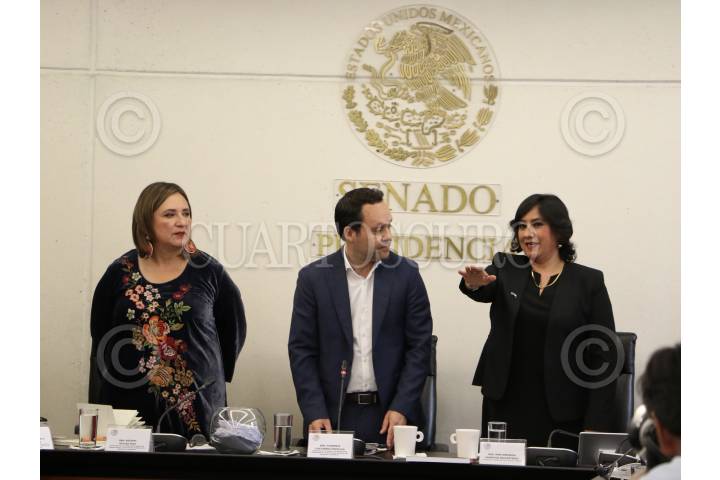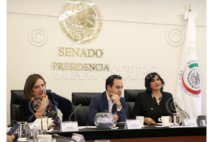 CIUDAD DE MÉXICO, 14OCTUBRE2019.-Xochitl Gálvez, Secretaria de la Comisión Anticorrupción, Transparencia y Participación Ciudadana del Senado de la República; Clemente Castañeda, Presidente de la Comisión Anticorrupción, Transparencia y Participación Ciudadana del Senado de la República e Irma Eréndira Sandoval, titular de la Secretaría de la Función Publica, durante la Comparecencia ante la Comisión Anticorrupción de la cámara alta. FOTO: ROGELIO MORALES /CUARTOSCURO.COM