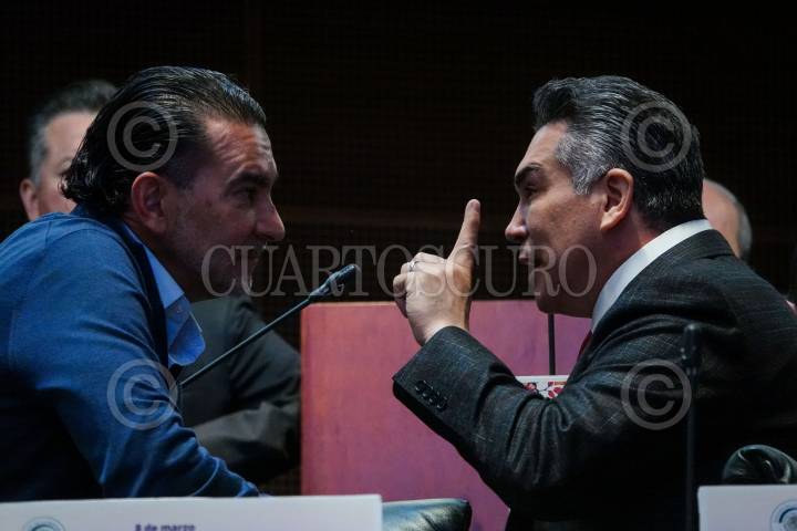 CIUDAD DE MÉXICO, 05MARZO2025.- El senador Luis Armando Melgar (PVEM) conversa con Alejandro Moreno Cárdenas, coordinador priista, previo al inicio de la sesión ordinaria en que se conmemoró el Día Internacional de la Mujer (8 de marzo). FOTO: GALO CAÑAS/CUARTOSCURO.COM