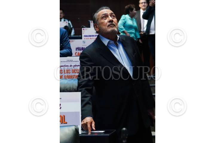 CIUDAD DE MÉXICO, 05MARZO2025.- El senador independiente, Manlio Fabio Beltrones pasa asistencia durante la sesión ordinaria en que se conmemoró el Día Internacional de la Mujer (8 de marzo). FOTO: GALO CAÑAS/CUARTOSCURO.COM