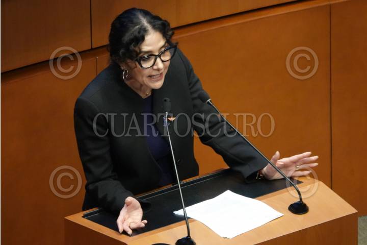 CIUDAD DE MÉXICO, 05MARZO2025.- Alejandra Barrales, senadora de Movimiento Ciudadano, hace uso de la tribuna durante la sesión ordinaria en que se conmemoró el Día Internacional de la Mujer (8 de marzo). FOTO: GALO CAÑAS/CUARTOSCURO.COM